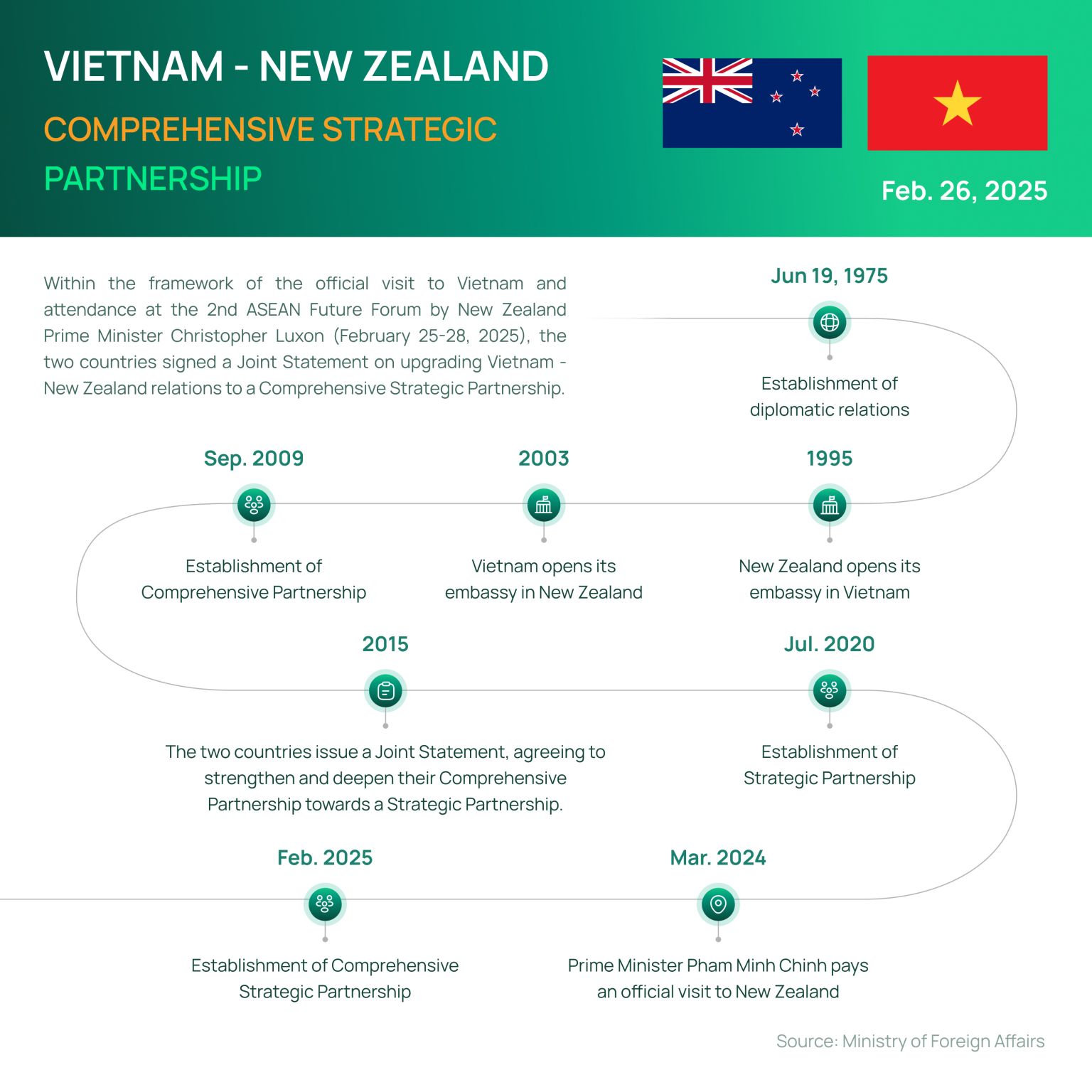 Vietnam and New Zealand have elevated their relationship to a Comprehensive Strategic Partnership, signaling deeper economic integration and investment opportunities. This enhanced partnership bodes well for Vietnam’s economic trajectory, particularly in sectors like agriculture, education, and tourism.